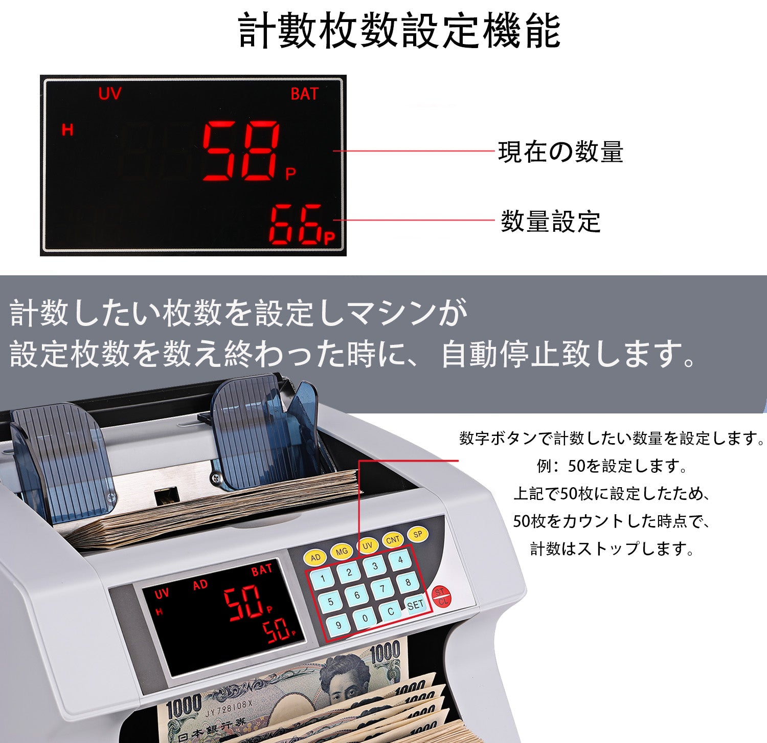 - 「日本円専用設計・新旧紙幣対応」2024年新旧紙幣に対応し、面倒な設定をせずに、電源を入れるだけですぐに使用できます。面倒な設定をすることなく起動するだけで直ぐにご利用が可能です。一度に最大五百枚まで計数可能です。2024年度の新紙幣にも対応してます;日本語表記の設計でより簡単に操作できます